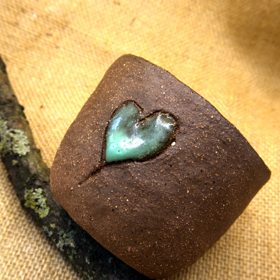 This handcrafted ceramic cup is a soulful companion for your cacao rituals, tea meditations, or quiet morning moments. Created from textured terracota clay with a deep forest-green glaze inside and a carved heart detail on the outside, it’s both grounding and tender—perfect for ceremonies of the heart.